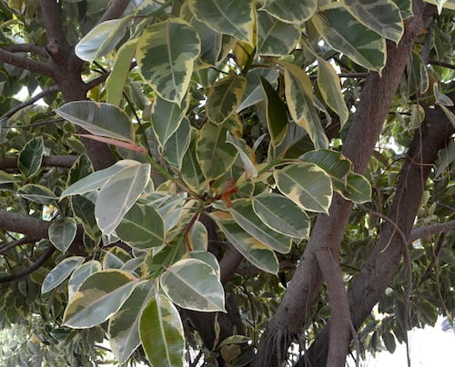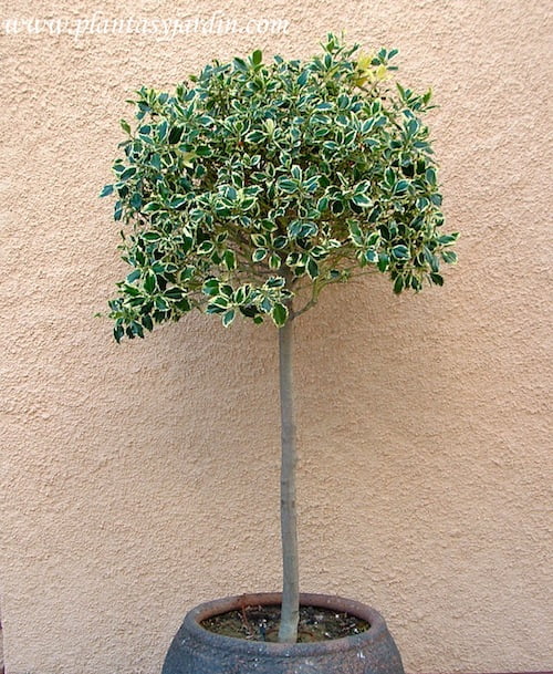 Además de las plantas mencionadas arriba, está la opción de las especies que tienen el follaje variegado opción «variegata» como por ejemplo: Ficus benjamina, Ilex aquifolium, Liriope muscari, Lazo de amorAspidistra, Hibiscus rosa-sinensis, Elaegnus pungens, Phormiun tennax, Ficus elastica, entre otros.