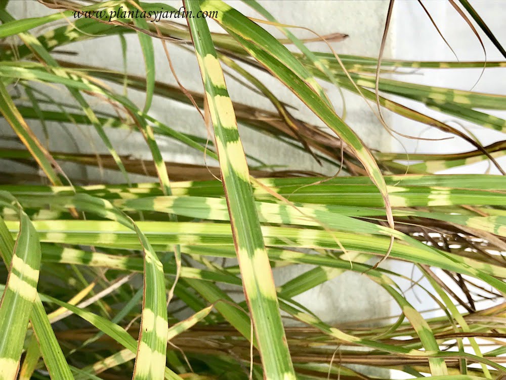Otras especies que ya poseen el follaje variegado son la herbácea Aucuba japonica y otra gramínea como el Miscanthus sinensis «Zebrinus».