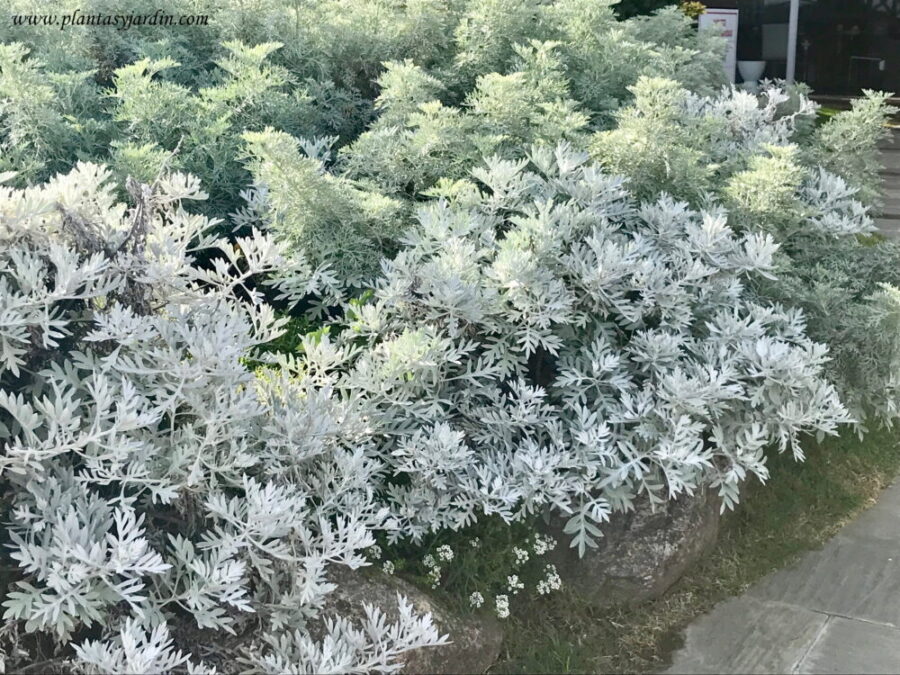 - Follaje: perenne. Tiene hojas alternas, alargadas, ovaladas, profundamente lobadas, pubescentes y de color gris plateado y blanco en el envés.