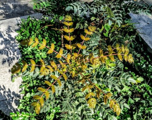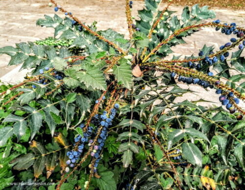 - Género: Mahonia, género de arbustos perennes que se utilizan en jardinería por sus hojas y sus racimos de flores perfumadas. Las variedades de gran porte son idóneos para el cultivo como especies destacadas o únicas; mientras que las especies de porte bajo son útiles como tapizantes.