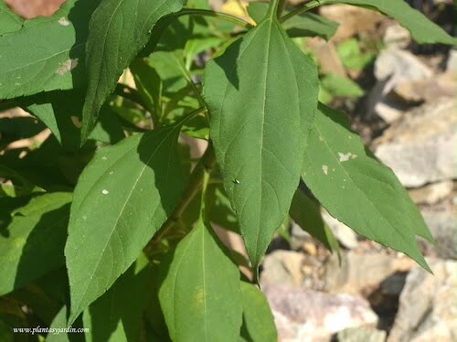 • Follaje: hojas ovado-lanceoladas, alternas con el margen aserrado.